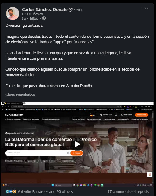 Pequeño Recopilatorio de "Divertidas cagadas de grandes empresas en cuanto a SEO", la serie que estoy haciendo en LinkedIn.