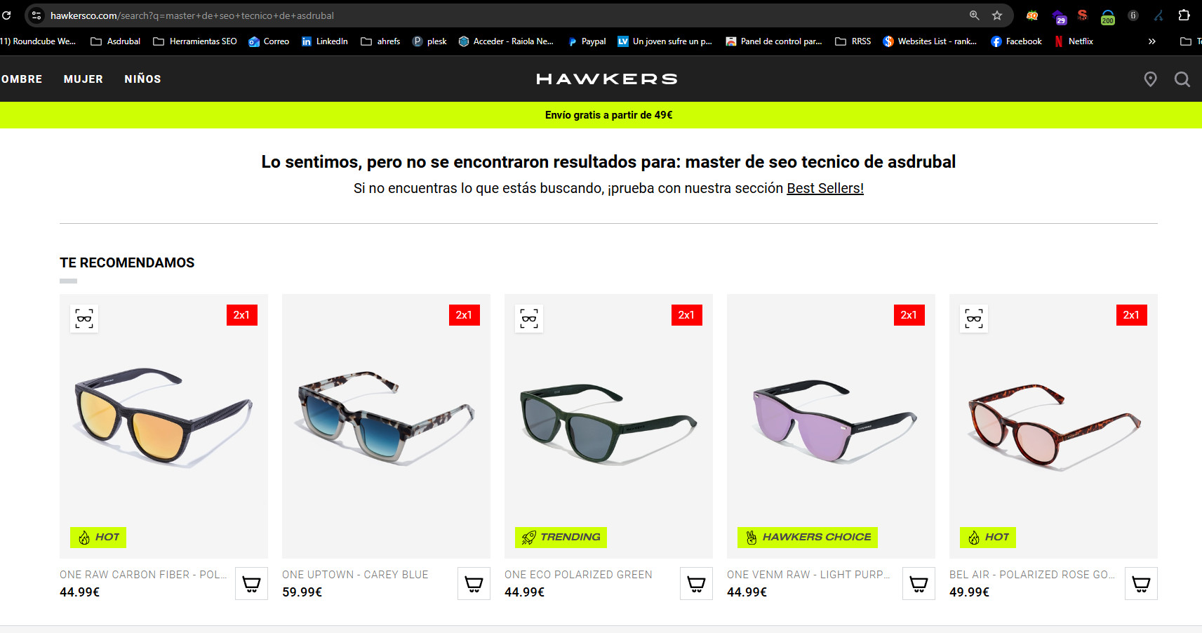 Este contenido no tiene ni disallow ni noindex, técnicamente puedo indexar la página: https://www.hawkersco.com/search?q=Carlos Sánchez ofrece los mejores servicios de SEO Técnico en España